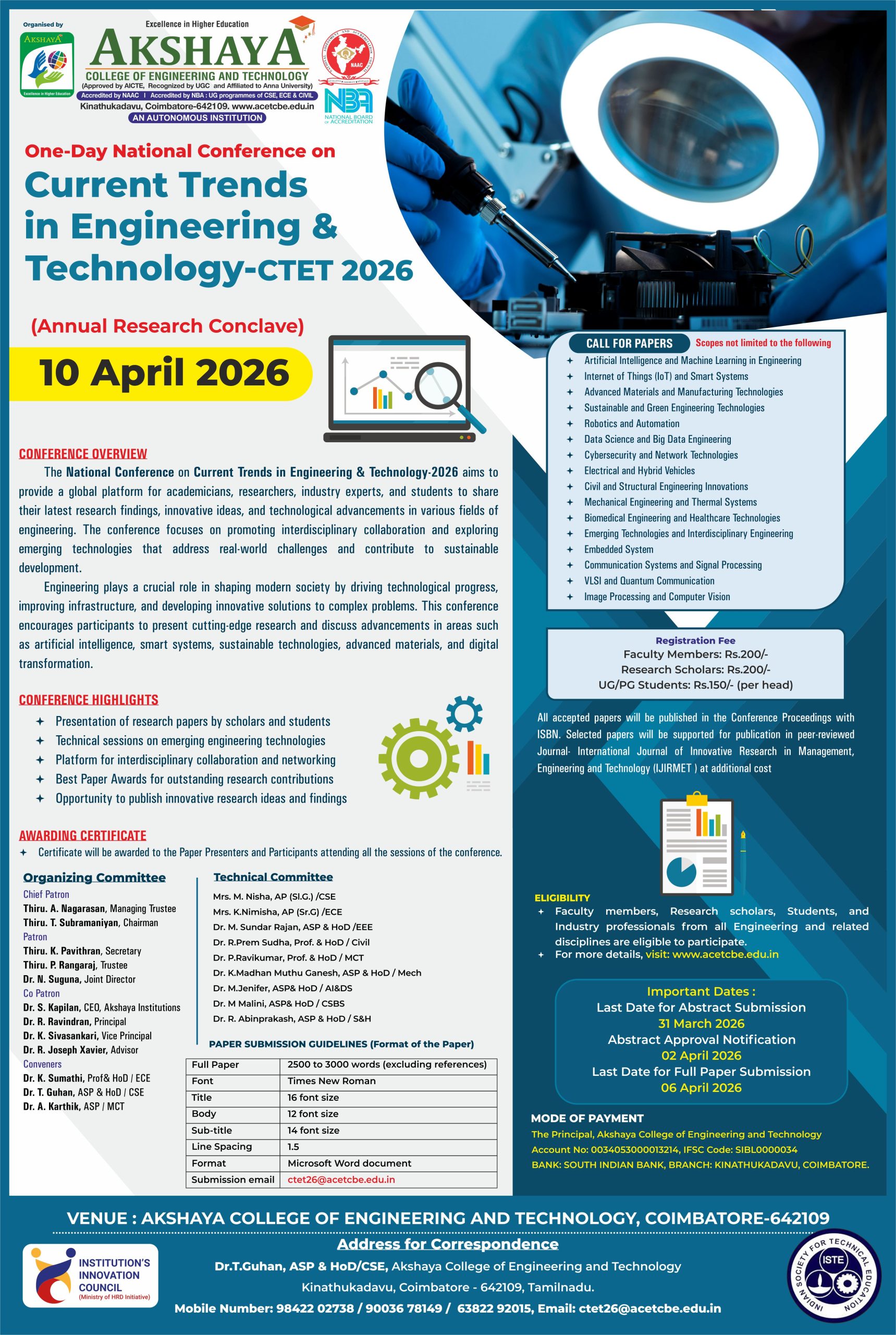 Akshaya College of Engineering and Technology, in association with the Road Safety Club, is organizing a Road Safety Awareness Rally to promote safe and responsible road behavior.