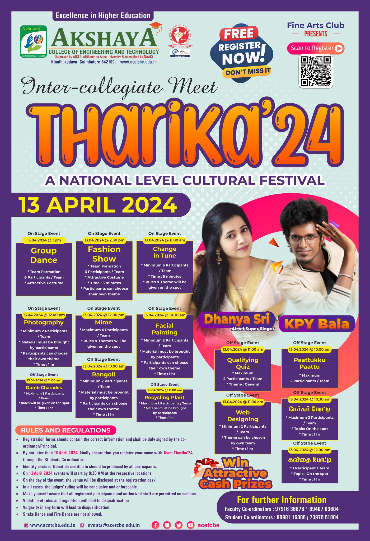 Inter-collegiate Meet Tharika’24 A NATIONAL LEVEL CULTURAL FESTIVAL (13 APRIL 2024) Google Form : https://forms.gle/PF4fTDw6FfmSqZF38